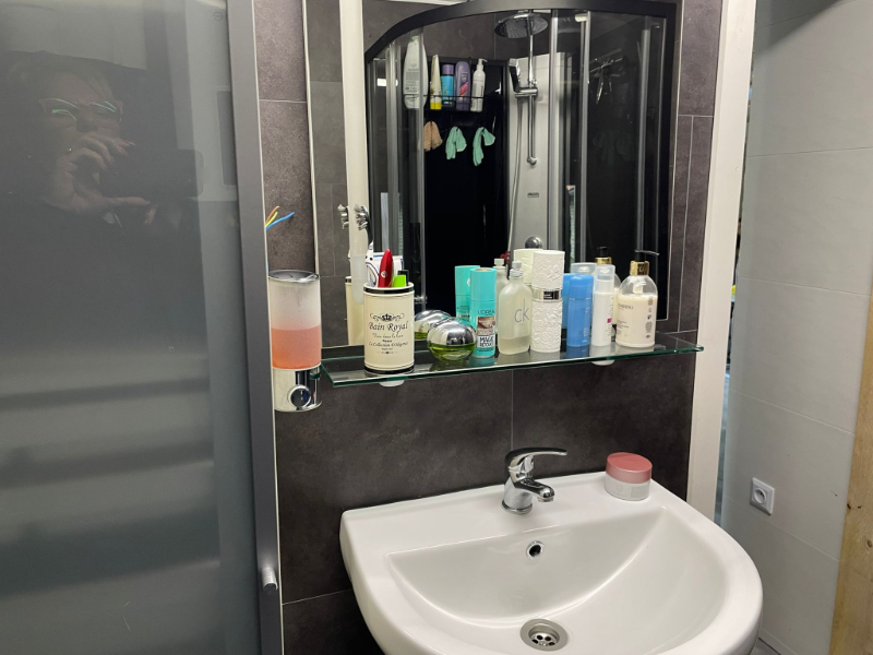 De woning heeft een leefruimte, open keuken met elektrische apparaten, badkamer en 2 slaapkamers.