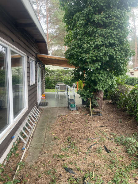 De vakantiewoning heeft een zitkamer met keuken , 1 slaapkamer, badkamer en berging. Buiten is er nog een bergruimte.