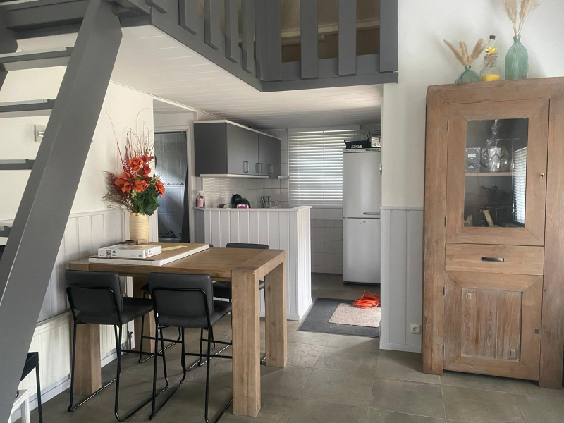 Deze charmante vakantiewoning is gelegen op het vakantiepark Parelstrand te Lommel. De vakantiewoning met een verdieping staat op een betonnen vloerplaat met daarop een tegelvloer heeft een woonkamer, met open keuken, die beschikt over een gaskookplaat en vaatwasser, luxekoel/diepvries combinatie , badkamer met ligbad, douche en toilet en 2 slaapkamers. centrale verwarming , dubbel geïsoleerd en volledig voorzien van rolluiken Er is ook een aparte ruimte, de mancave, waar een gezellig cafeetje is gemaakt., rond het huisje een volledige nieuwe schutting met ledverlichting , en zeer ruime parking , men kan deze chalet kopen gemeubeld of zonder